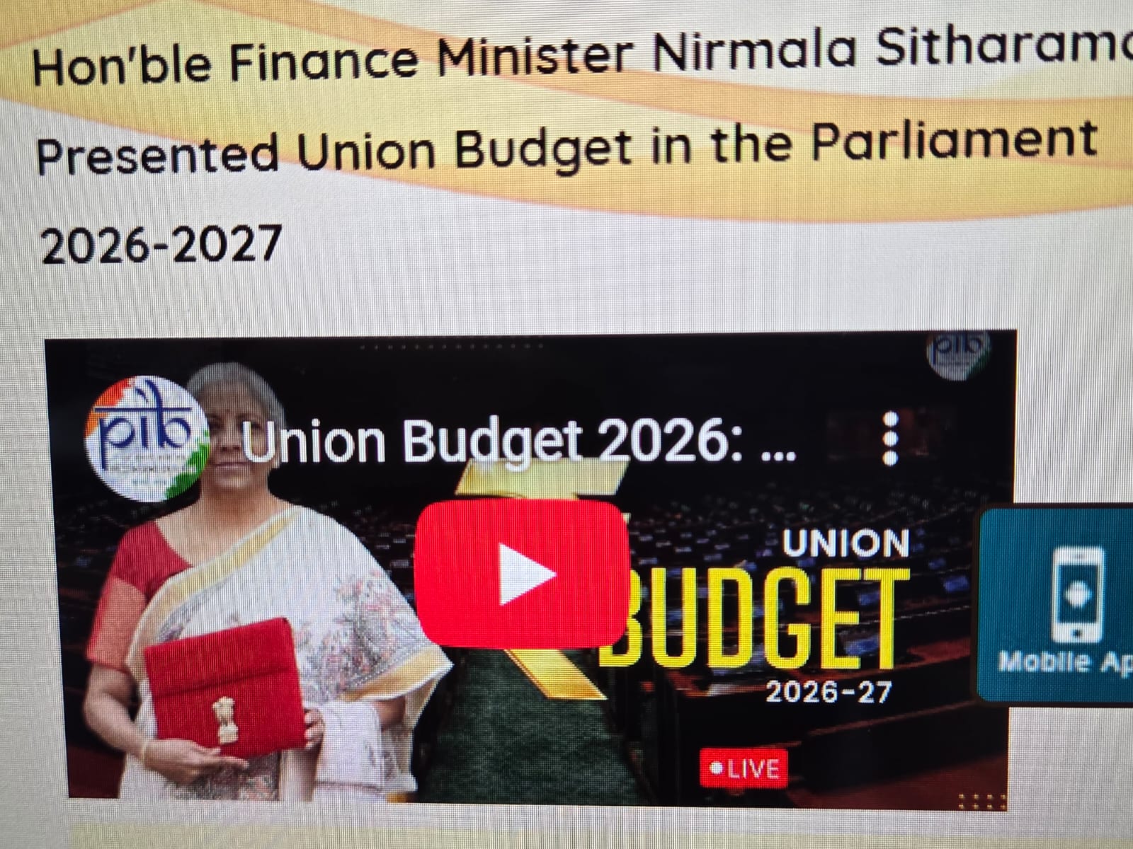 Budget 2026-2027 - Speech of Nirmala Sitharaman, Minister of Finance, February 1, 2026